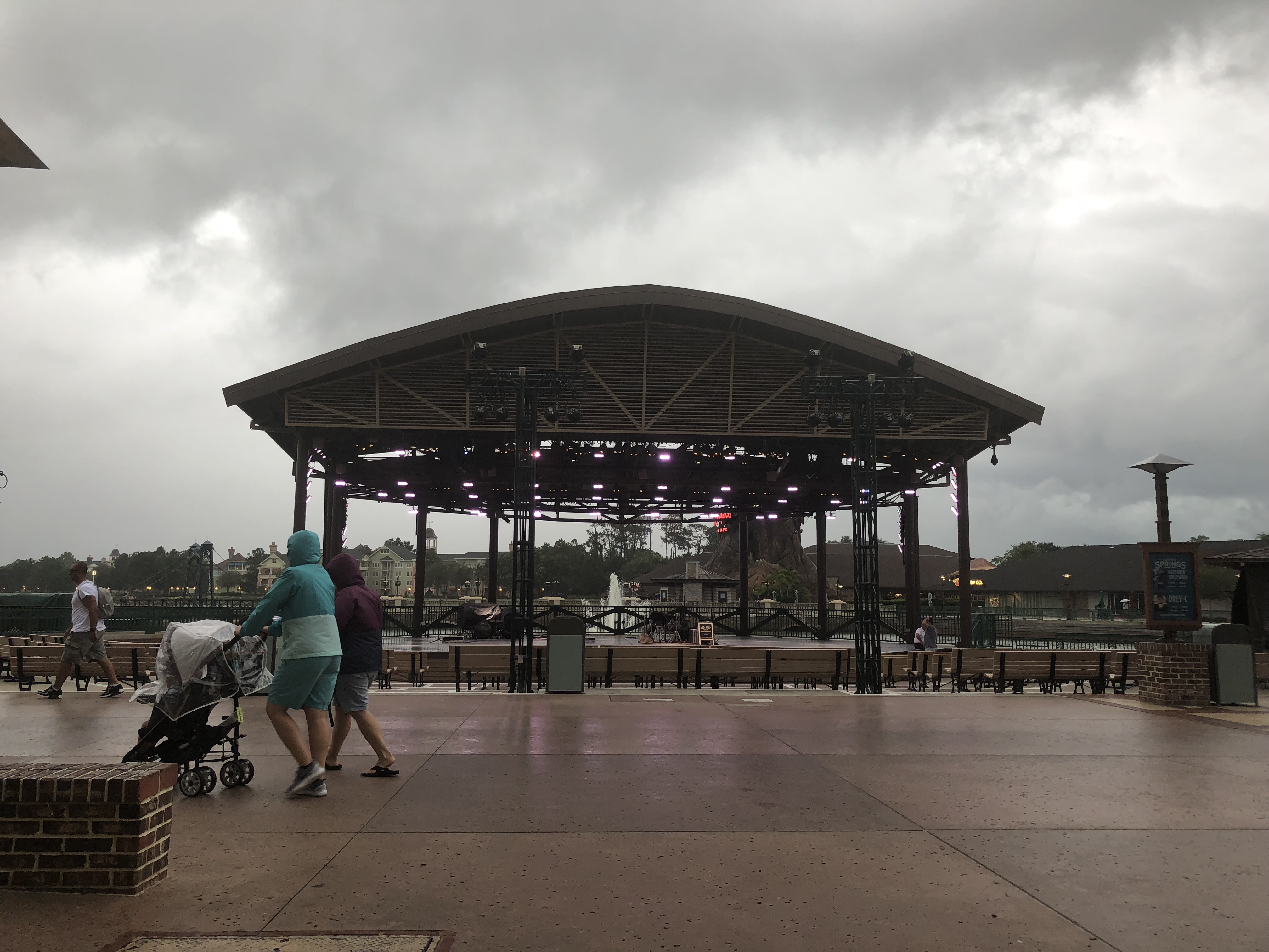 These two pictures were taken just a few minutes apart while we went in and out of World of Disney at Disney Springs. Bright sunshine to absolute pouring rain! That evening we were not prepared at all, despite usually having ponchos with us!